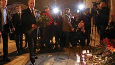 Россия. СПб.ПУТИН.Президент.Взрыв. Метро. Трагедия. Президент России Владимир Путин вечером 3 апреля прибыл к станции «Технологический институт» метро Санкт-Петербурга и возложил цветы к временному мемориалу у стены. Президент не стал отвечать ...